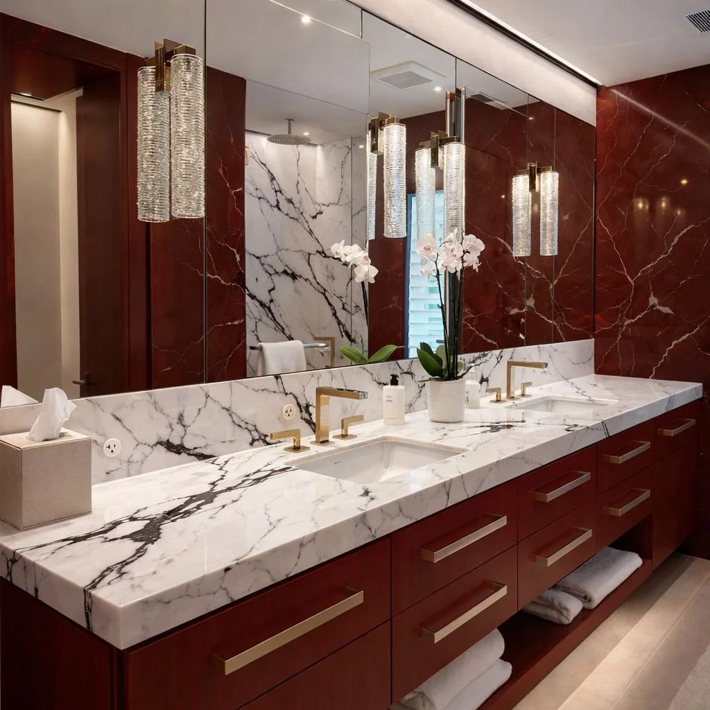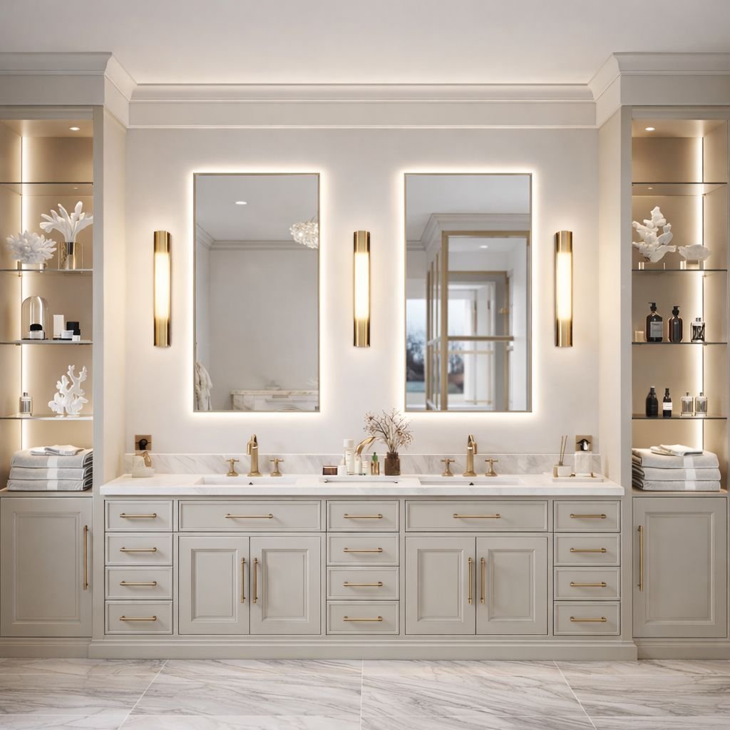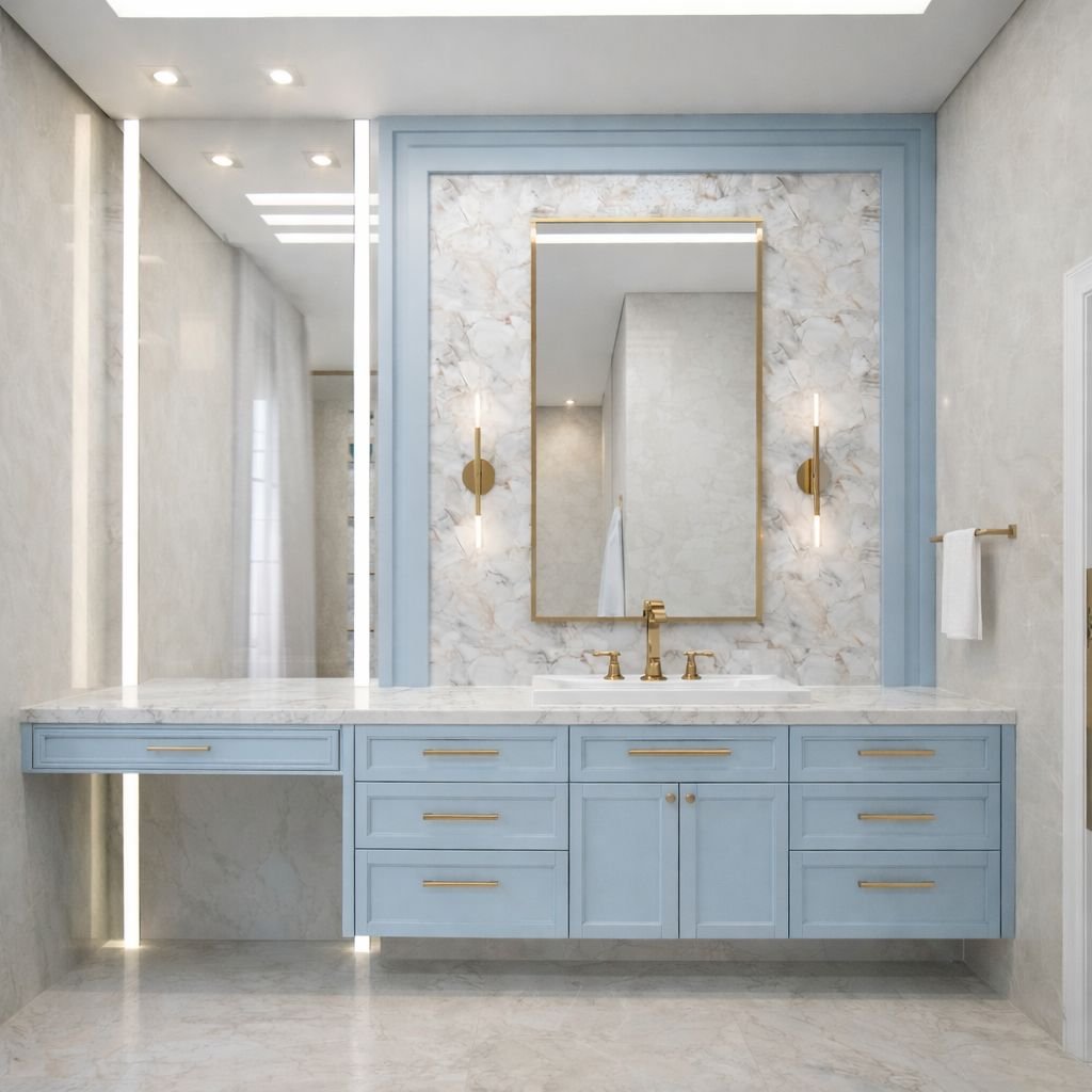 At Aurum Interiors, we design and install elegant bathroom spaces that combine refined style with everyday functionality. From custom vanity cabinetry to premium surfaces and finishing details, every element is carefully planned for durability, comfort, and a polished luxury look.
