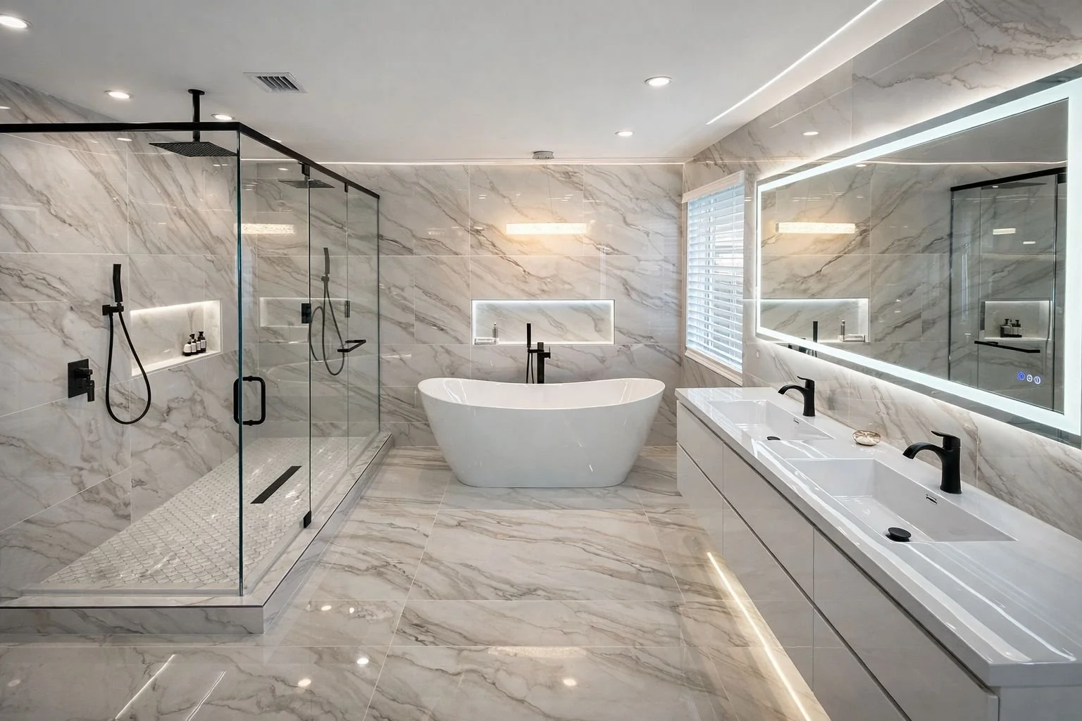Designed for Comfort. BuCustom vanities, premium surfaces, and expert installation.ilt with Quality.